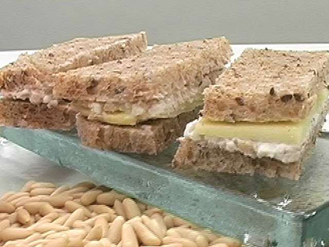 Веселый сэндвич для разносторонних личностей.Состав:цельнозерновой хлеб — 4 кусочка;сыр — 100 гр;грецкие орехи — 50 гр;яблоки — 3 штуки;небольшое количество йогурта;мускатный орех — 1 штука;соль, перец — по вкусу.