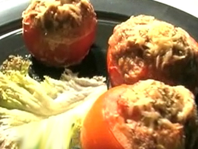 Рецепт вкусных фаршированных томатов.Состав:помидоры — 3 штуки;яйцо — 1 штука;чеснок — 1 зубчик;фарш — 250 гр;масло, панировочные сухари, орегано, сыр.