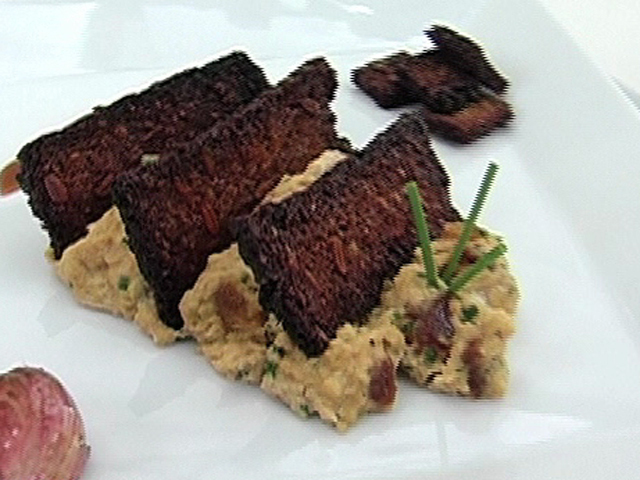 Горячая закуска из яиц.Состав:финики — 2 штуки;яйца — 2 штуки;чеснок — 2 зубчика;зеленый лук — 1 столовая ложка;сливочное масло — 50 гр;хлеб — 1 кусочек;растительное масло, соевый соус, перец, кунжутное масло — по вкусу.