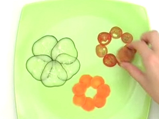 Красивое оформление блюда из тунца.Состав:тунец — 100 гр;яйца — 2 штуки;мука — 100-200 гр;панировочные сухари — 15 гр;сыр — 50 гр;молоко — 1 столовая ложка;помидоры черри — 2 штуки;морковь — 1 штука;огурец — 1 штука;оливковое масло.