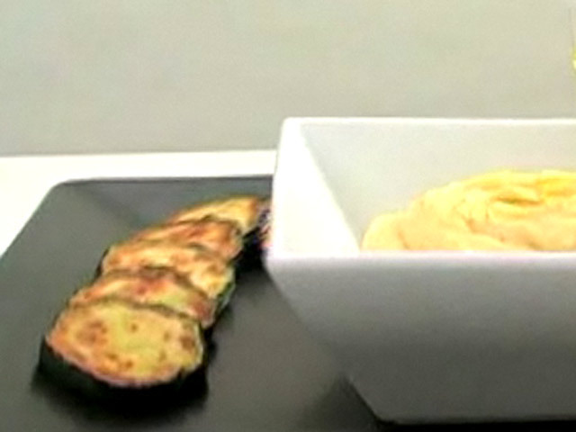 Картофель с чесночным соусом. Кипр / Греция.На 4 порции:картофель — 4 штуки;миндаль — 50 гр;чеснок — 3 зубчика;оливковое масло — 6 столовых ложек;уксус — 1 столовая ложка;кабачки — 7 кусочков;белый перец, морская соль.