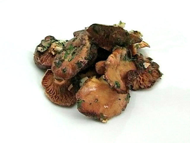 Замечательная закуска из грибов с чесночком.Состав:петрушка — 2 веточки;чеснок — 3 зубчика;рыжики — 12 штук;соль, оливковое масло — по вкусу.