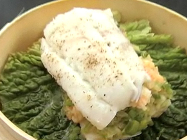 Низкокалорийное блюдо из морского языка и лангуста. 296 калорий.Состав:лангуст — 140 гр;рыбный бульон — 1/2 чашки;оливковое масло — 1 столовая ложка;морской язык — 150 гр;зеленый лук, соль, черный перец, чеснок.