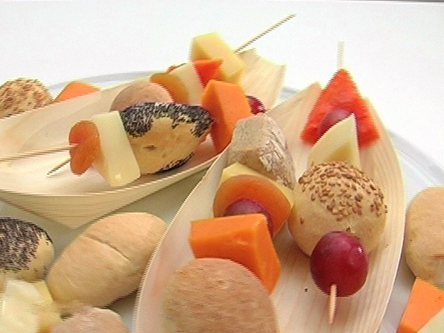 Фрукты и сыр на шпажках