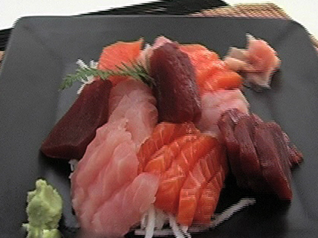 Традиционное японское блюдо.Состав:окунь — 300 гр;лосось — 1/2 хвоста;тунец — 300 гр;белая редька — 1 штука;васаби — 1 чайная ложка;гари — 20 гр.